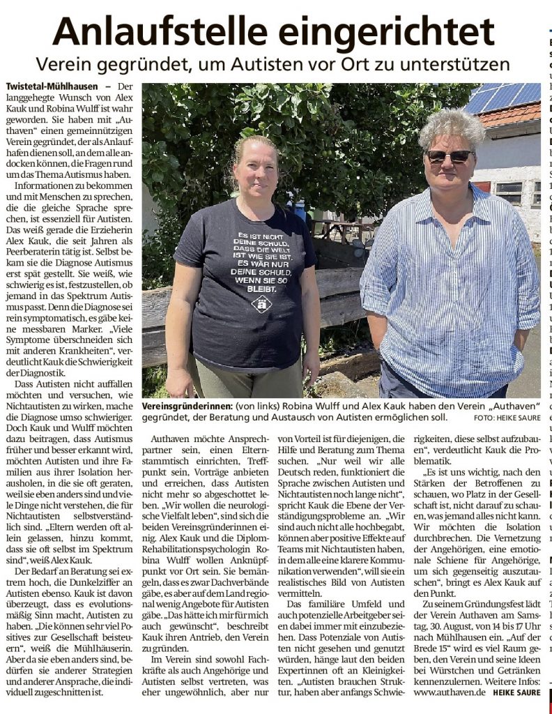 11.07.2025 Wir sind in der Zeitung :). Die Waldeckische Landeszeitung hat uns besucht und über uns berichtet 🙂 Hier der Link zur Zeitungsseite.