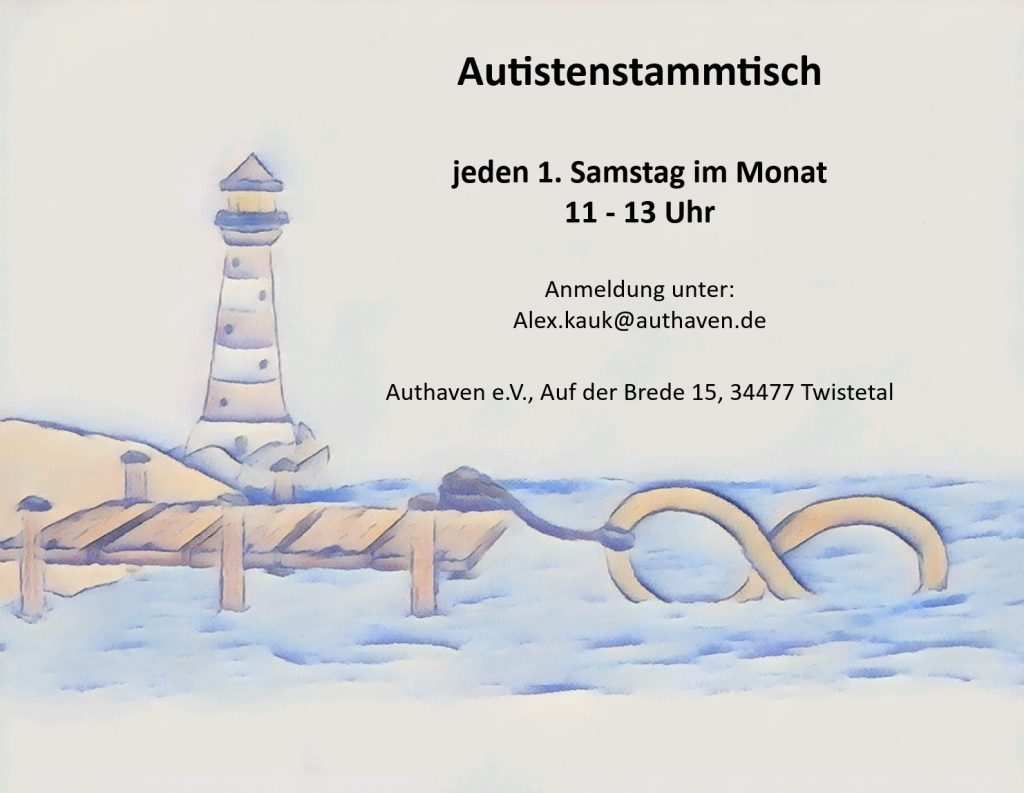 Selbstverständlich ist dieses Treffen auch für Nicht-Vereinsmitglieder kostenlos zugänglich (bei dauerhafter Teilnahme wäre jedoch eine Mitgliedschaft schön ;)). Daher sind alle eingeladen, die im Spektrum sind oder es bei sich vermuten. Wenn Ihr Interesse habt, schreibt Alex bitte unter alex.kauk@authaven.de an. Eine Teilnahme ist nur mit Anmeldung möglich, da wir zur Zeit die Treffen noch bei Alex im Haus stattfinden lassen.